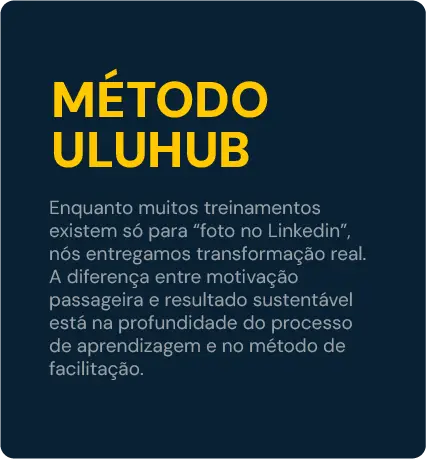 De projetos de grande escala a mentorias personalizadas, a Uluhub atua com profundidade, unindo estratégia, cultura e pessoas para gerar transformação real e sustentável.