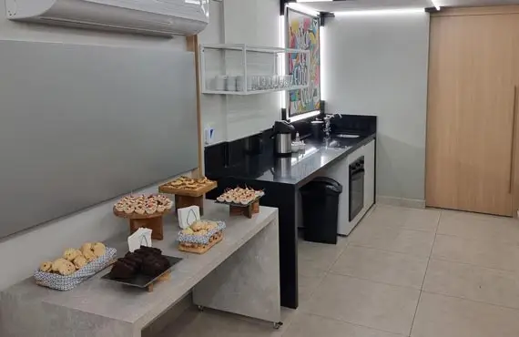 - Conforto e praticidade: ambiente climatizado, cozinha integrada para coffee breaks e suporte logístico completo.